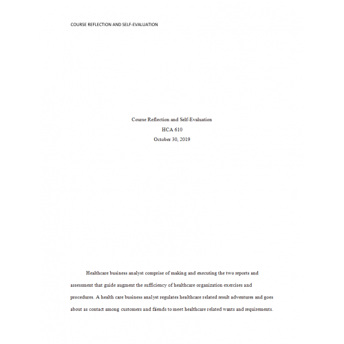 For this assignment, you are required to write a reflection and self-evaluation of your understanding of health care business analyses. Your assignment should include a discussion of the following: