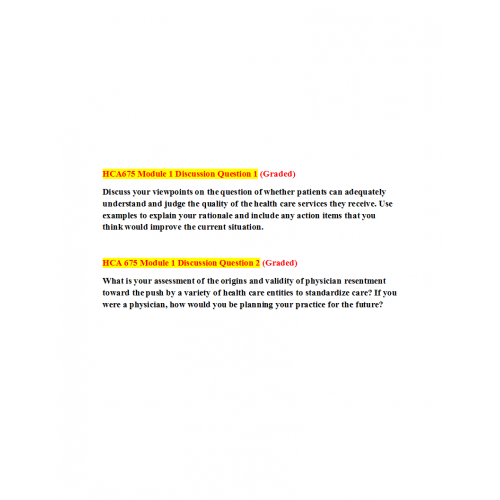 HCA 675 Week 1 Discussion 1 and 2 with Answers