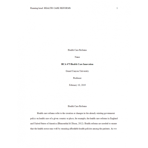 HCA 675 Week 2 Assignment, Health Care Reforms Paper