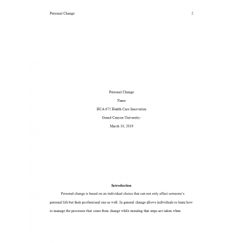 HCA 675 Week 6 Assignment, Personal Changes Paper