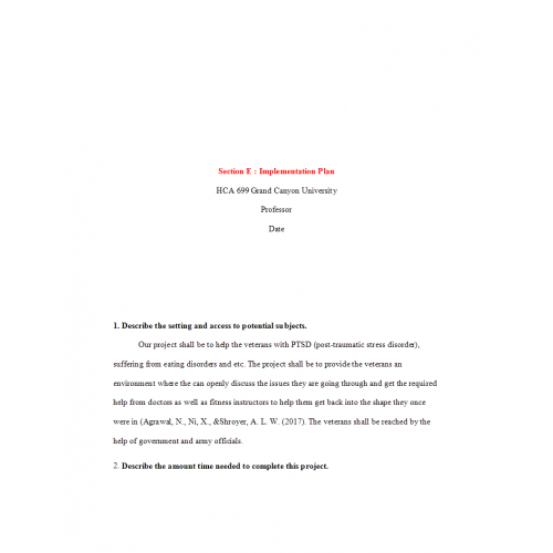 HCA 699 Week 5 Section E, Implementation Plan