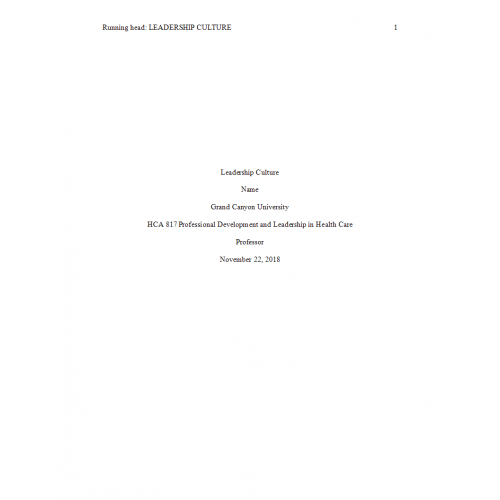Write a paper (1,000-1,250 words) that addresses the development of a leadership culture in a health care organization. Include the following in your paper: