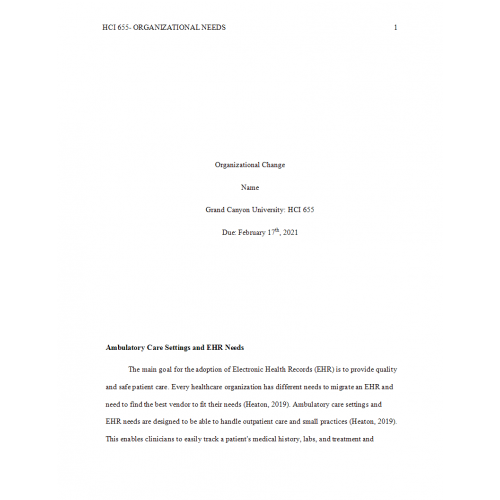 The purpose of this assignment is to become familiar with how organizational needs influence the selection of EHRs.