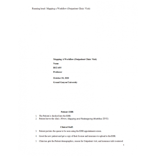 The purpose of this assignment is to map a complete workflow for a clinical process.