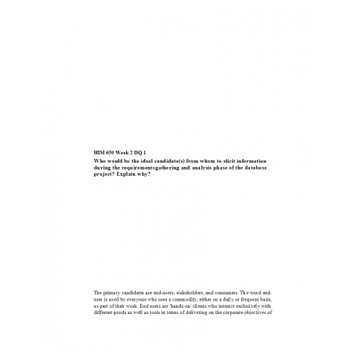 Who would be the ideal candidate(s) from whom to elicit information during the requirements gathering and analysisphase of the database project? Explain why.