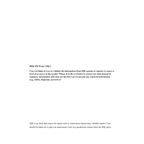 Can you think of ways to validate the information from SQL queries or reports, to assure a level of accuracy in the results? When, if at all, is it better to extract raw data instead of summary information and what are the best ways to present any retrieved information (e.g., tables, diagrams, narrative)?