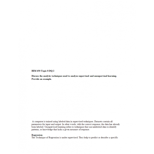 Discuss the analytic techniques used to analyze supervised and unsupervised learning. Provide an example.
