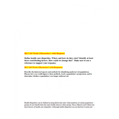 HLT 205 Week 6 Discussion Question 1 and 2 with Answers
