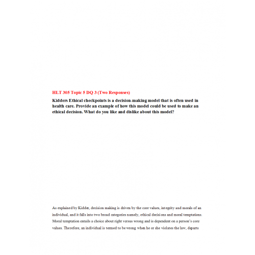 HLT 305 Topic 5 Discussion Question 3 (Two Responses)