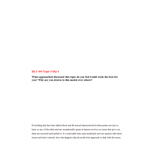 HLT 305 Topic 5 Discussion Question 4 with Answers
