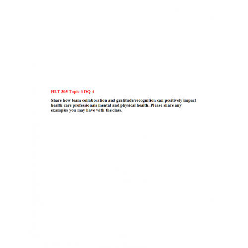 Share how team collaboration and gratitude/recognition can positively impact health care professionals mental and physical health. Please share any examples you may have with the class.