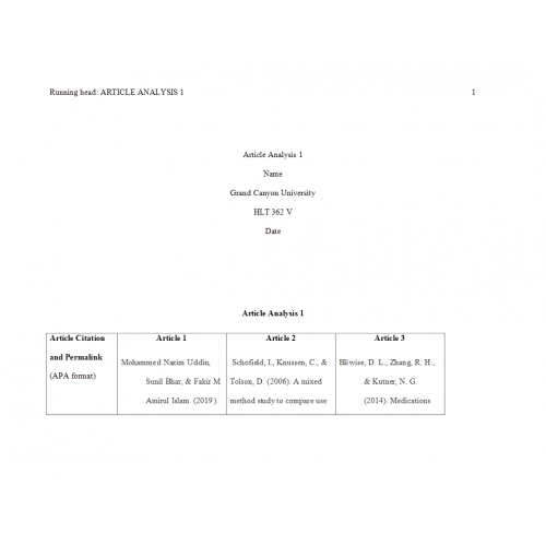HLT 362V Topic 2 Article Analysis 1, Quantitative Research Article