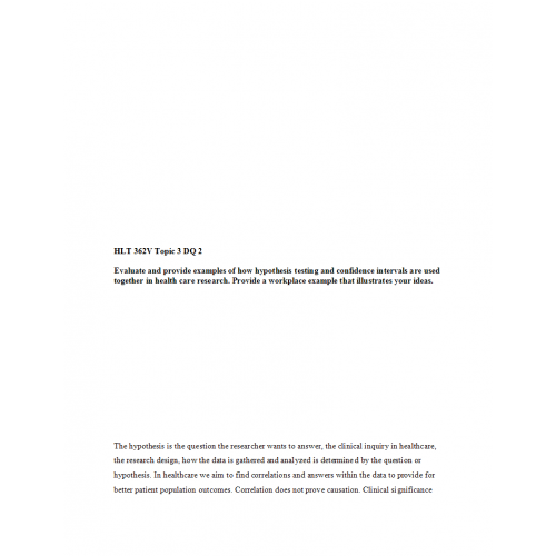 HLT 362V Topic 3 DQ 2, Hypothesis Testing and Confidence Intervals