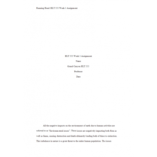 HLT 555 Week 1 Assignment, Environmental Health from a Historical Perspective Paper 2