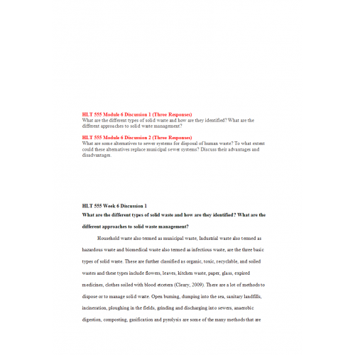 HLT 555 Week 6 Discussion 1 and 2 (03 Responses)