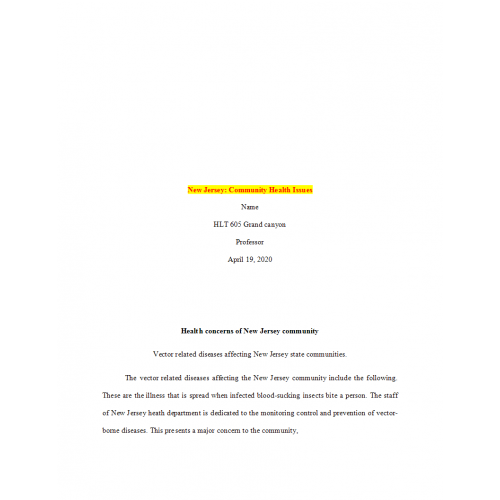 HLT 605 Week 8 Assignment, Community Prevention - New Jersey Community