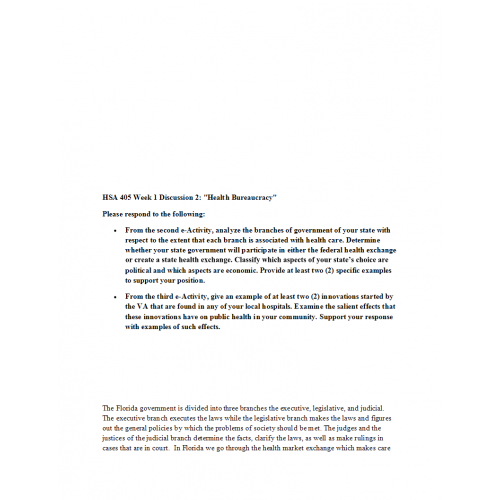 HSA 405 Week 1 Discussion 2: "Health Bureaucracy"