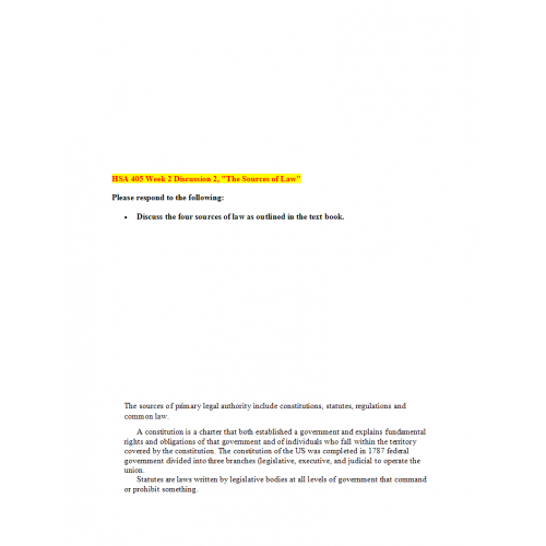HSA 405 Week 2 Discussion 2, "The Sources of Law"