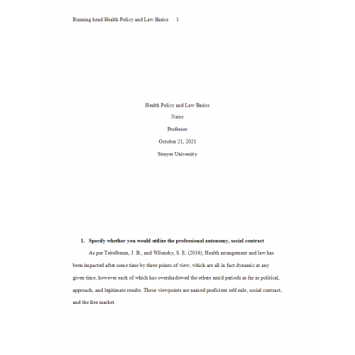 HSA 405 Week 3 Assignment 1, Health Policy and Law Basics