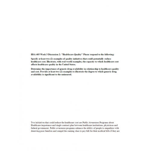 HSA 405 Week 3 Discussion 2: "Healthcare Quality" Please respond to the following: