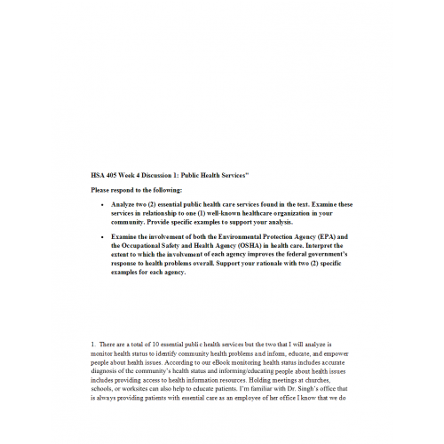HSA 405 Week 4 Discussion 1: Public Health Services"