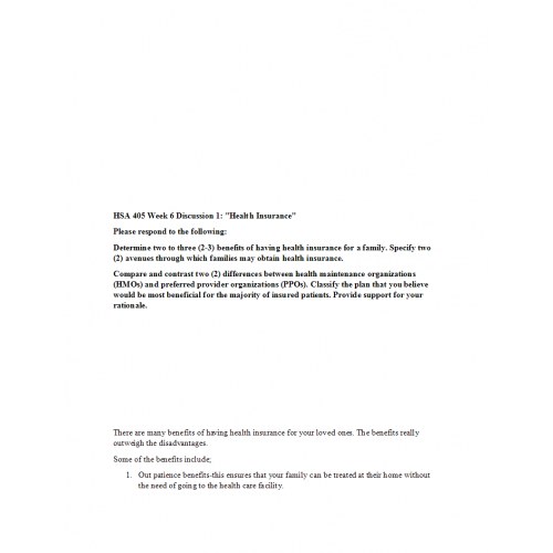 HSA 405 Week 6 Discussion 1: "Health Insurance"