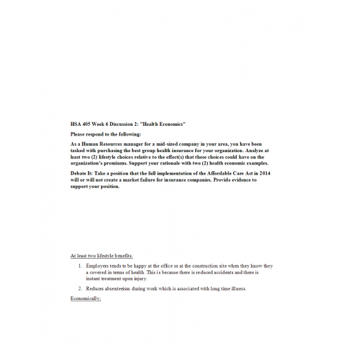 HSA 405 Week 6 Discussion 2: "Health Economics"