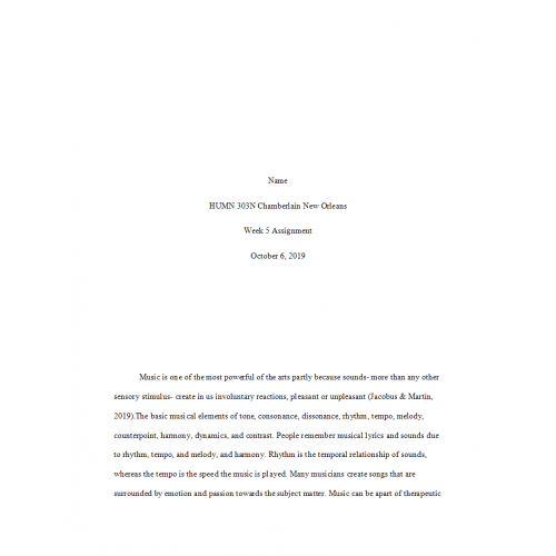 HUMN 303 Week 5 Assignment, Art Creation and Reflection - Music