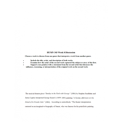 HUMN 303 Week 8 Discussion Question 2 with Answer