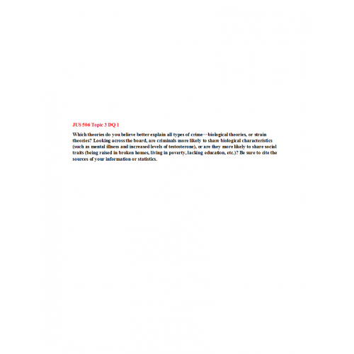 Which theories do you believe better explain all types of crime—biological theories, or strain theories? Looking across the board, are criminals more likely to share biological characteristics (such as mental illness and increased levels of testosterone), or are they more likely to share social traits (being raised in broken homes, living in poverty, lacking education, etc.)? Be sure to cite the sources of your information or statistics.