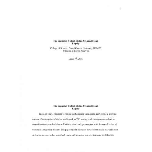 JUS 506 Topic 7 Assignment, The Impact of Violent Media