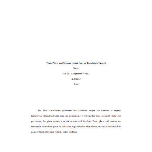 JUS 531 Week 5 Assignment 2, Time, Place and Manner - Restrictions on Freedom of Speechs