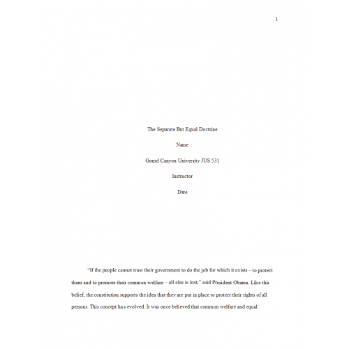 JUS 531 Week 8 Assignment 2, The Separate But Equal Doctrine