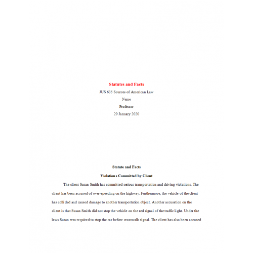 JUS 635 Topic 2 Week 2 Benchmark Assignment, Statutes and facts: