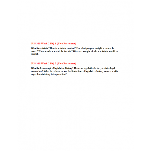 JUS 635 Topic 2 Week 2 Discussion 1 and 2 (Two Responses)