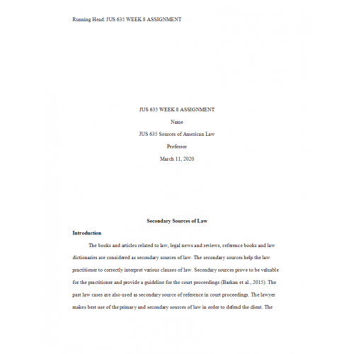 JUS 635 Topic 8 Week 8 Assignment, Secondry Source of Law