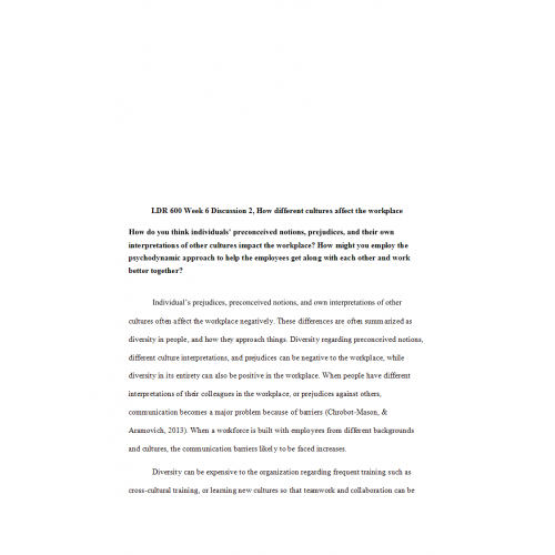 LDR 600 week 6 Discussion 2, How Different Cultures Affect the Workplace