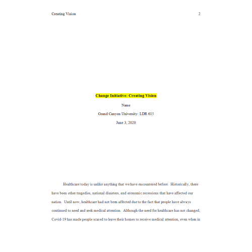 LDR 615 Topic 2 Assignment, Change Initiative Creating Vision