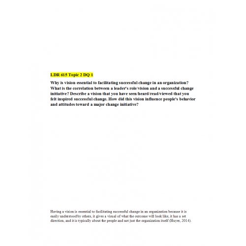 Why is vision essential to facilitating successful change in an organization? What is the correlation between a leader's role/vision and a successful change initiative? Describe a vision that you have seen/heard/read/viewed that you felt inspired successful change. How did this vision influence people's behavior and attitudes toward a major change initiative?