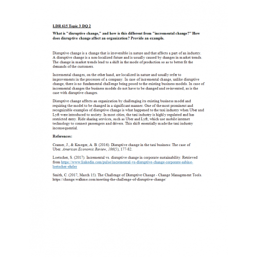 What is "disruptive change," and how is this different from "incremental change?" How does disruptive change affect an organization? Provide an example.