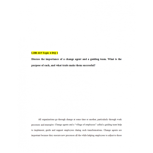 Discuss the importance of a change agent and a guiding team. What is the purpose of each, and what traits make them successful?