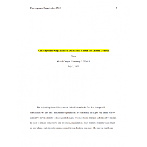 LDR 615 Topic 6 Assignment, Contemporary Organization Evaluation