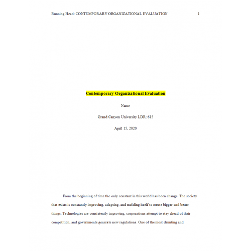 LDR 615 Topic 6 Assignment, Contemporary Organizational Evaluation 2