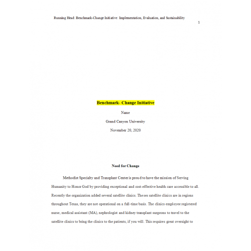 LDR 615 Topic 8 Benchmark, Change Initiative: Implementation, Evaluation and Sustainability