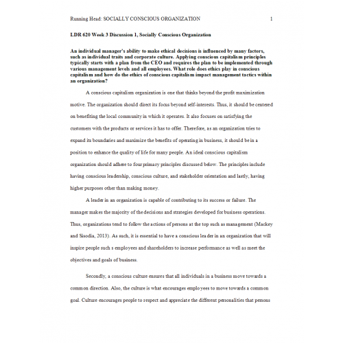 LDR 620 Week 3 Discussion 1, Socially Conscious Organization