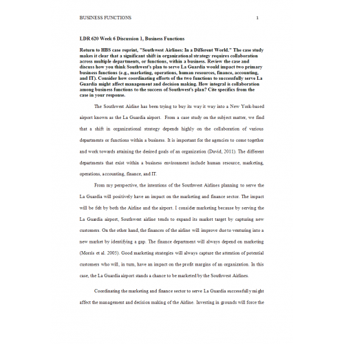 LDR 620 Week 6 Discussion 1, Business Functions: 2019