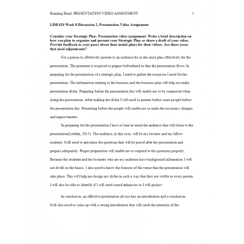 LDR 620 Week 8 Discussion 2, Presentation Video Assignment