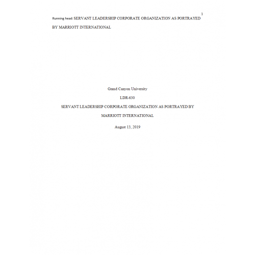 LDR 630 Week 5 Benchmark Assignemnt, Servant Leadership and the Greater Good 1