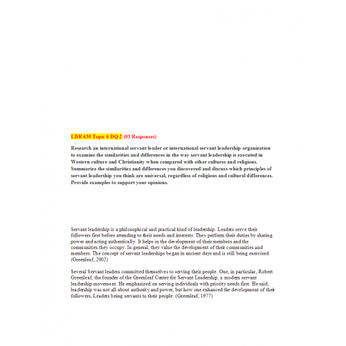 Research an international servant leader or international servant leadership organization to examine the similarities and differences in the way servant leadership is executed in Western culture and Christianity when compared with other cultures and religions. Summarize the similarities and differences you discovered and discuss which principles of servant leadership you think are universal, regardless of religious and cultural differences. Provide examples to support your opinions.