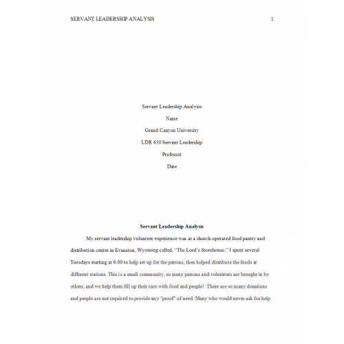 LDR 630 Week 8 Assignment Benchmark, Servant Leadership Analysis